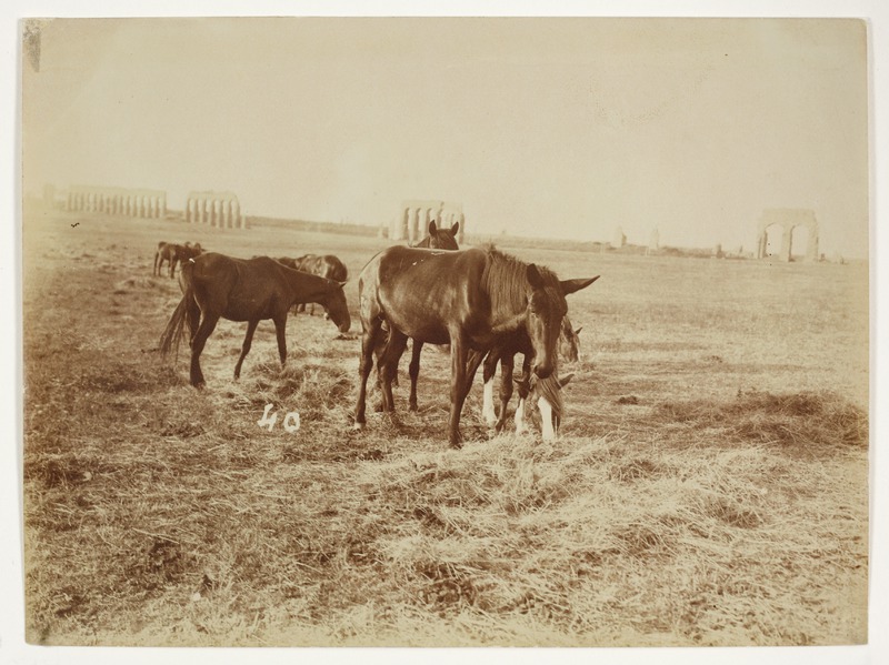 Cavalli al pascolo, sullo sfondo un acquedotto romanoGioja, EdoardoGioja