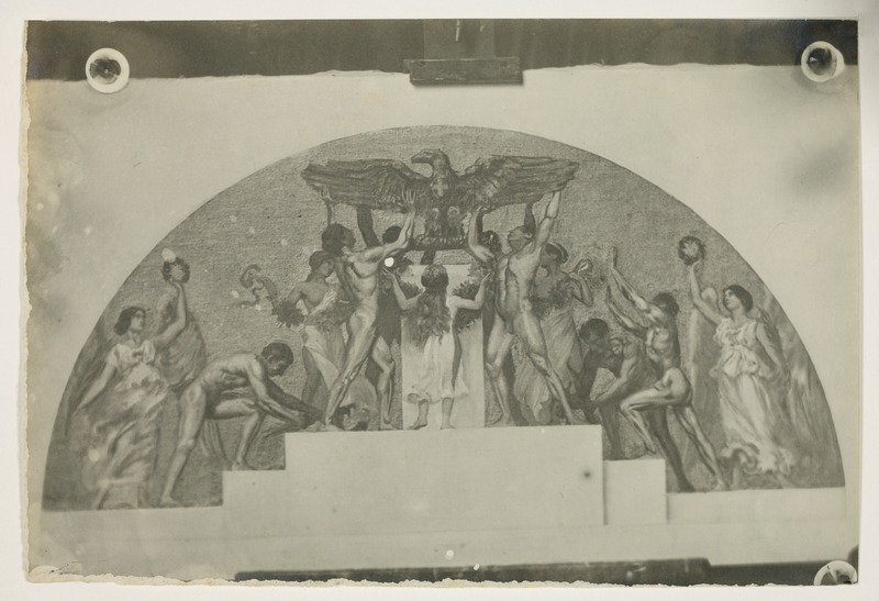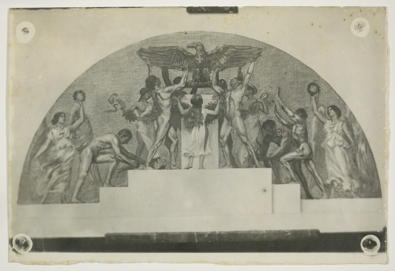 Lunetta con figure femminili che portano corone di alloro e figure maschili che innalzano un'aquila su un podio, disegnoGioja, EdoardoGioja