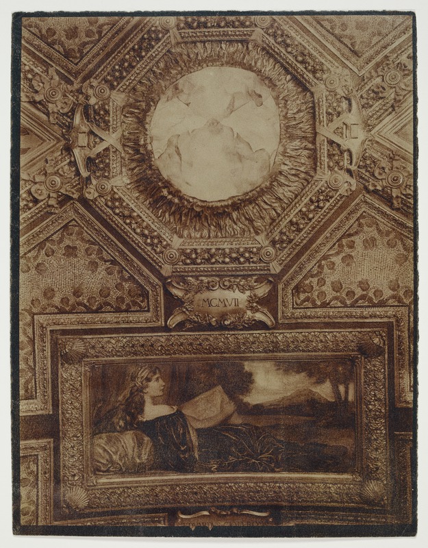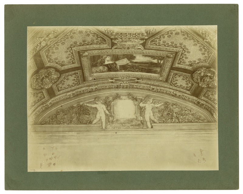 Roma - Palazzo Zuccari-Hertz, soffitto di una sala con dipinto raffigurante una donna distesa e putti reggi cartiglioGioja, EdoardoGioja