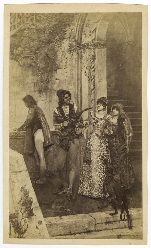 Falconiere e dame, figure in abiti medievali, dipintoGioja, EdoardoGioja
