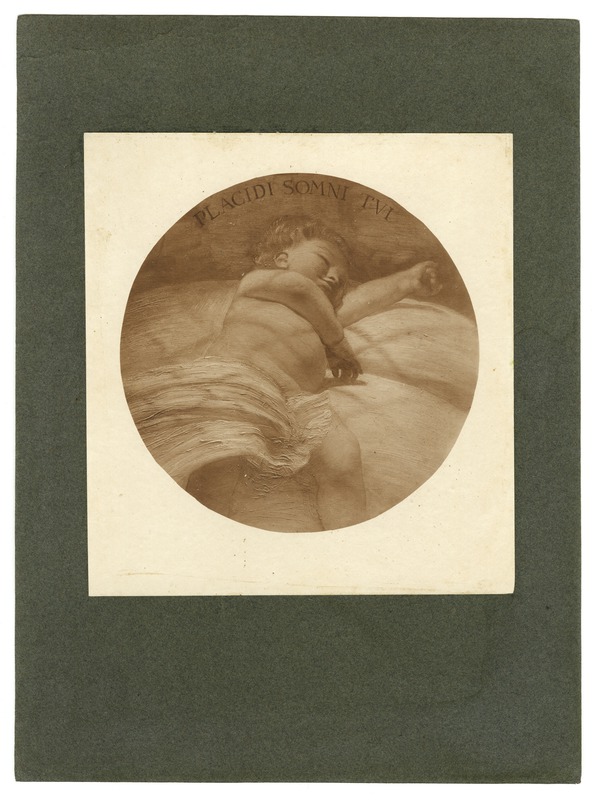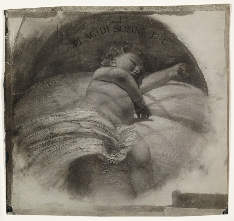 Roma - Dipinto raffigurante un putto dormiente, alle sue spalle la scritta Placidi somni tui, per il soffitto dell'ingresso del Villino RavàGioja, EdoardoGioja