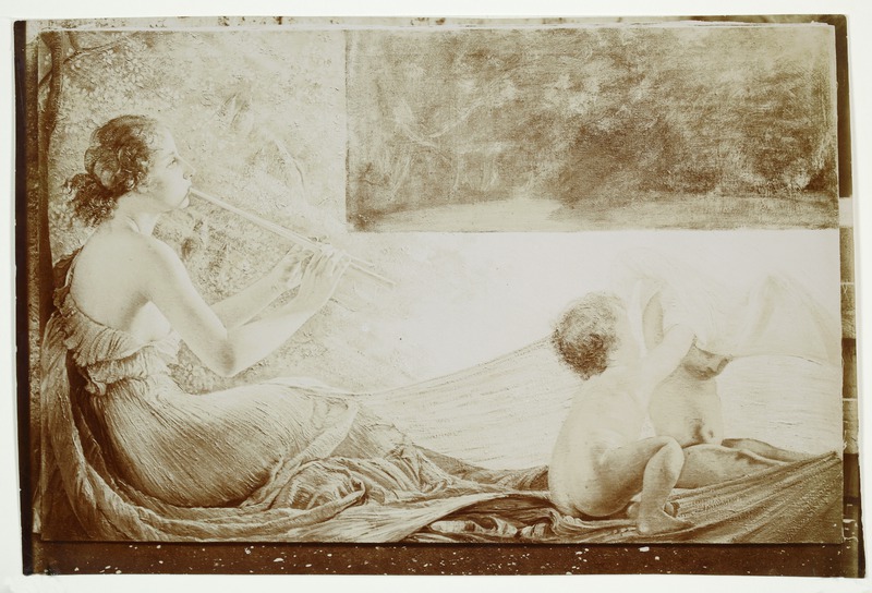 Roma - Dipinto raffigurante una donna con il flauto e putti per una sala del Villino Ravà delle RoseGioja, EdoardoGioja