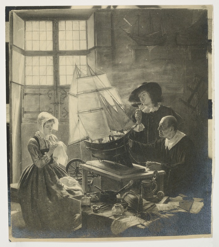 Interno fiammingo, una donna che ricama e due uomini, dipintoGioja, EdoardoGioja
