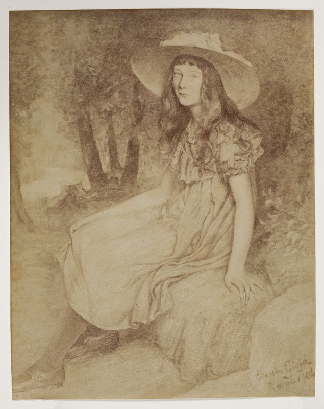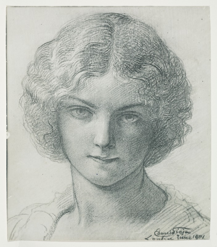 Ritratto di ragazza, disegno. In basso sul bordo data e firma Edoardo Gioja Londra June 1901Gioja, EdoardoGioja