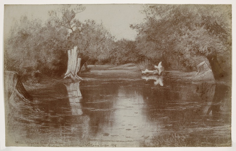 Paesaggio palustre, sul bordo la dedica Alla signora Paca Sindice Edoardo Gioja riconoscente - Vallone cupo 1898, dipintoGioja, EdoardoGioja