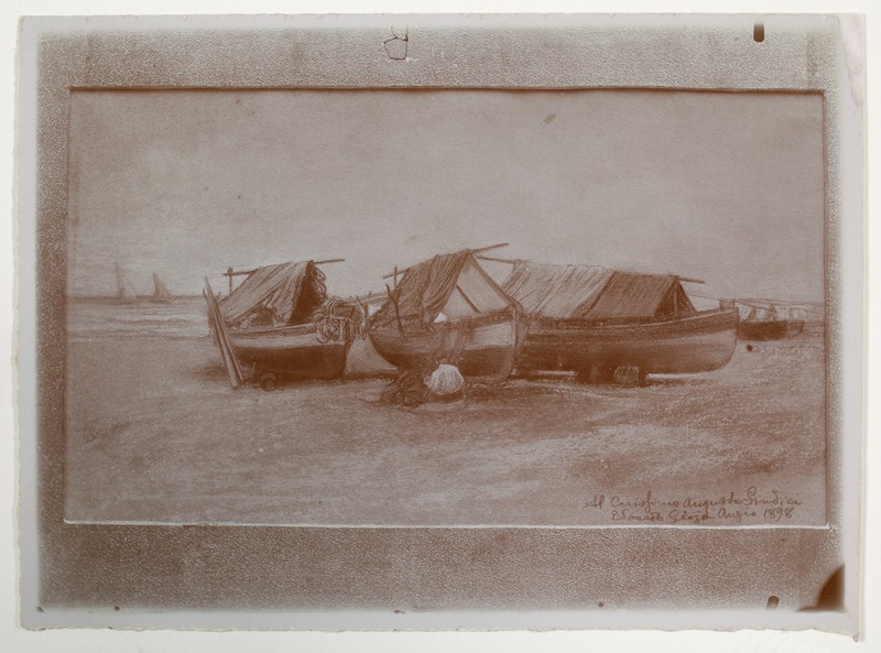 Barche sulla spiaggia, sul bordo la dedica Al carissimo Augusto Sindici Edoardo Gioja Anzio 1898 Gioja, EdoardoGioja