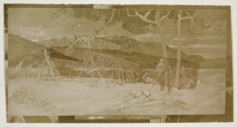 Paesaggio montano con monumento celebrativo (monumento ai caduti ?)Gioja, EdoardoGioja
