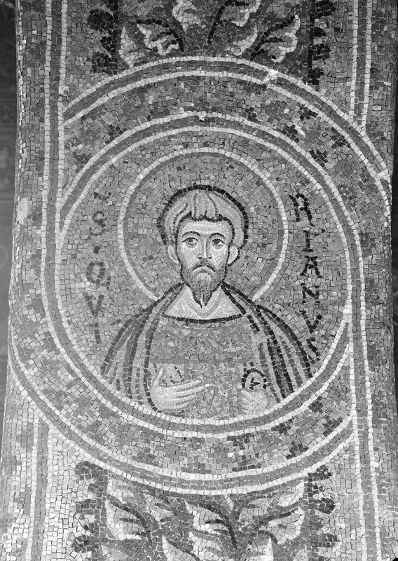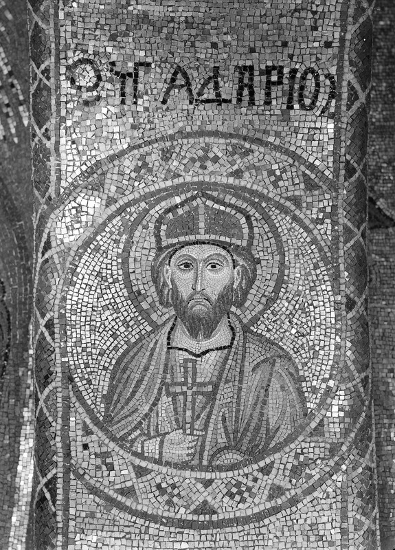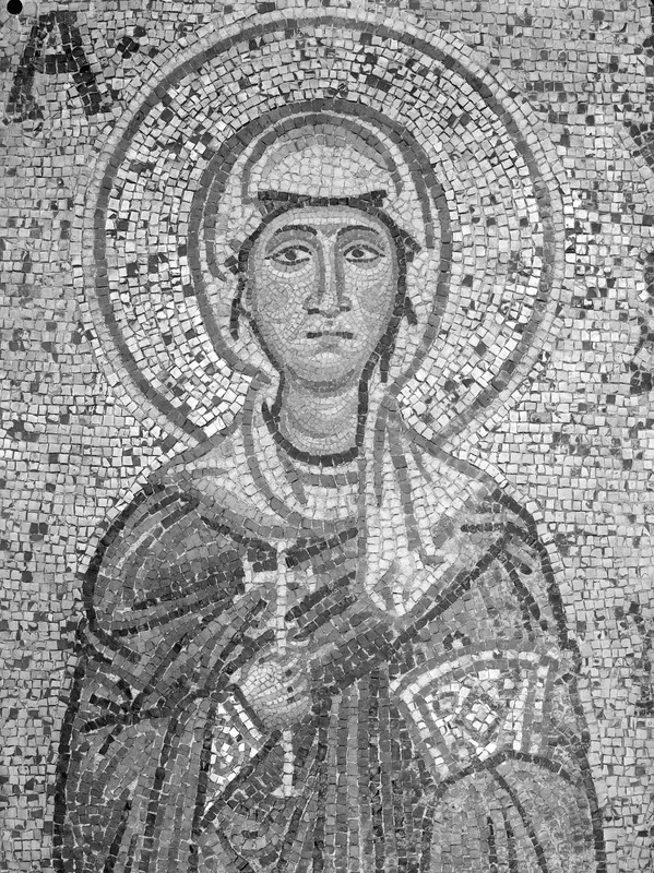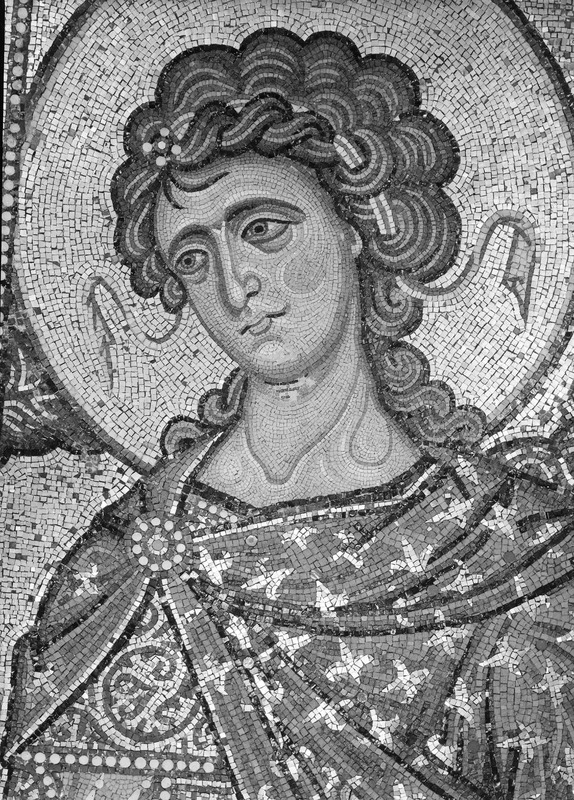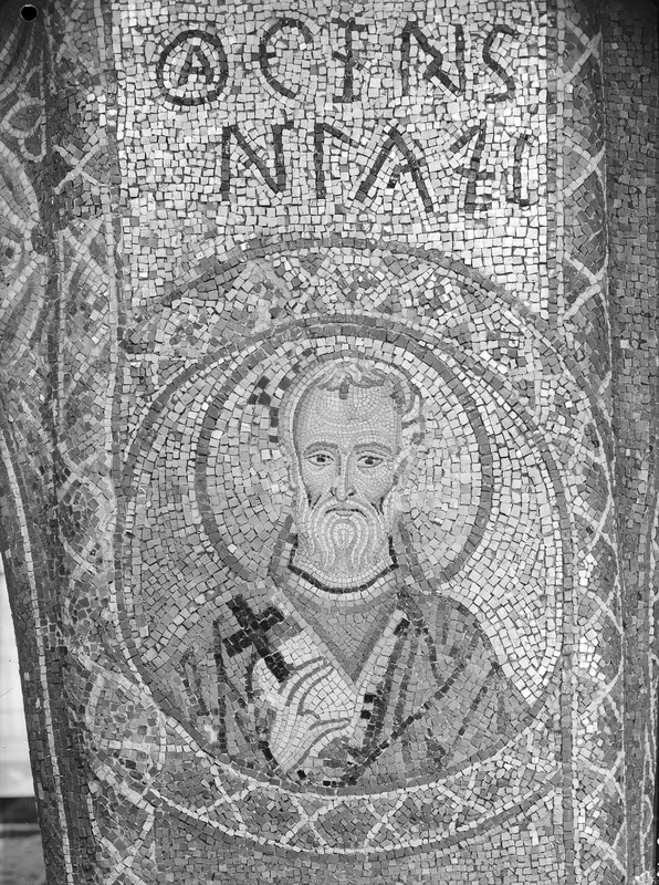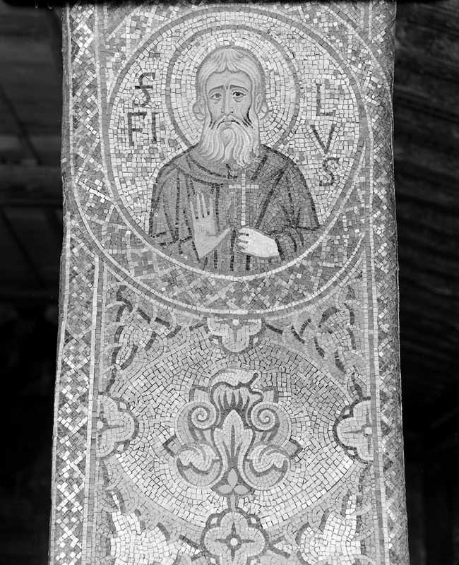 Palermo - Palazzo dei Normanni - Cappella Palatina navata lato sud, piedritto sopra la seconda colonna da est, S. Tecla, particolareMaraini, FoscoMaraini