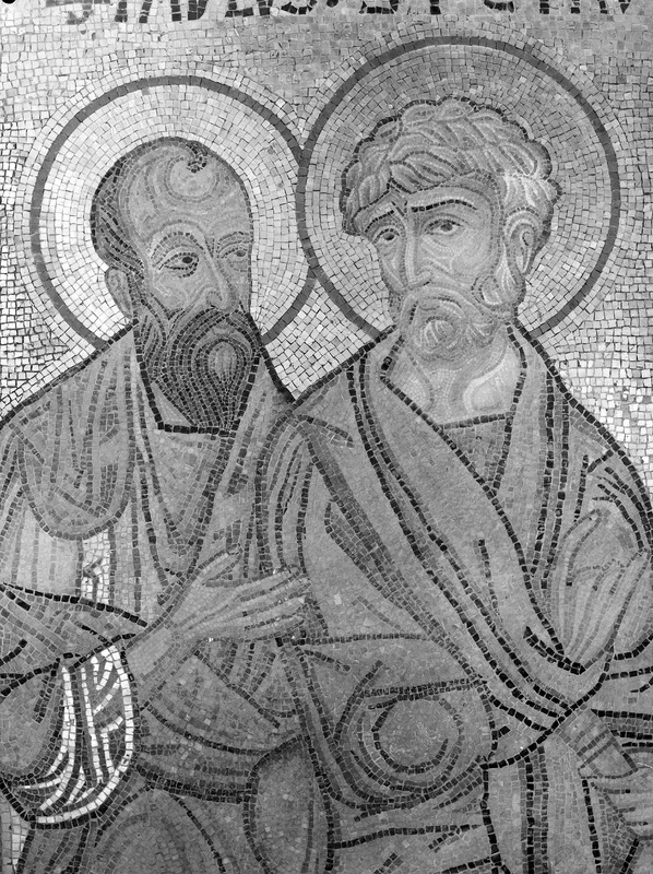 Palermo - Palazzo dei Normanni - Cappella Palatina, navata laterale nord, parete nord, disputa con Simon Mago, part. delle figure di S. Pietro e S. PaoloMaraini, FoscoMaraini
