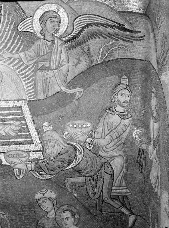 Palermo - Palazzo dei Normanni - Cappella Palatina, ala sud del transetto, parete sud, Natività, part. Magi offerenti doni, angeloMaraini, FoscoMaraini