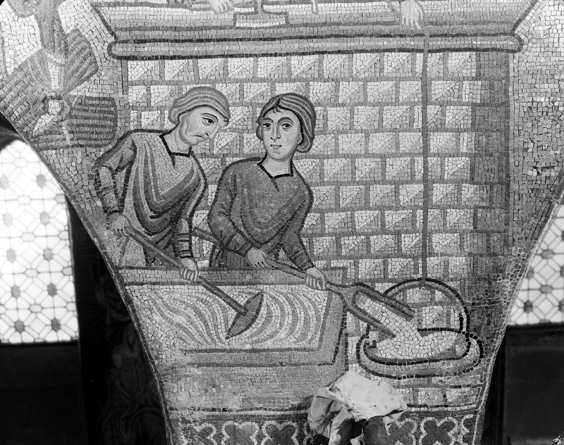 Palermo - Palazzo dei Normanni - Cappella Palatina, la torre di Babele, part. operai che lavorano la calceMaraini, FoscoMaraini