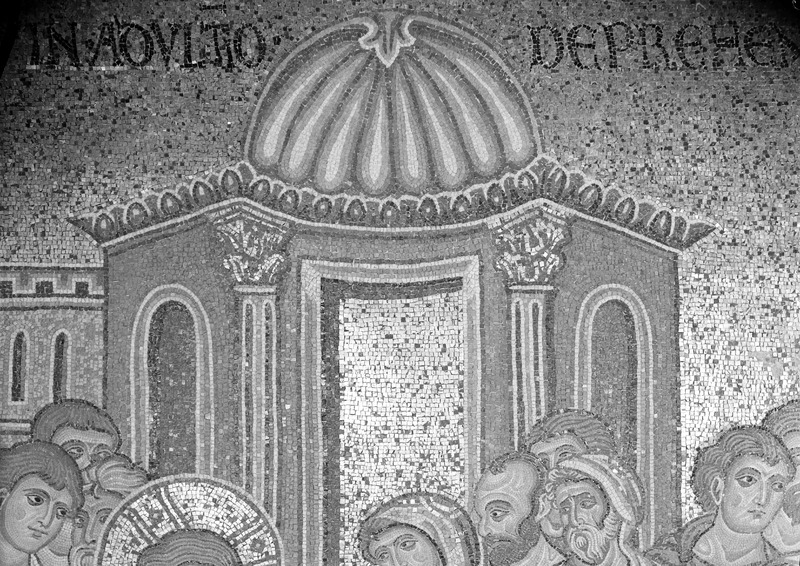 Monreale - Cattedrale di Santa Maria Nuova - Transetto, braccio meridionale, seconda tentazione di Cristo, part.: la casaMaraini, FoscoMaraini