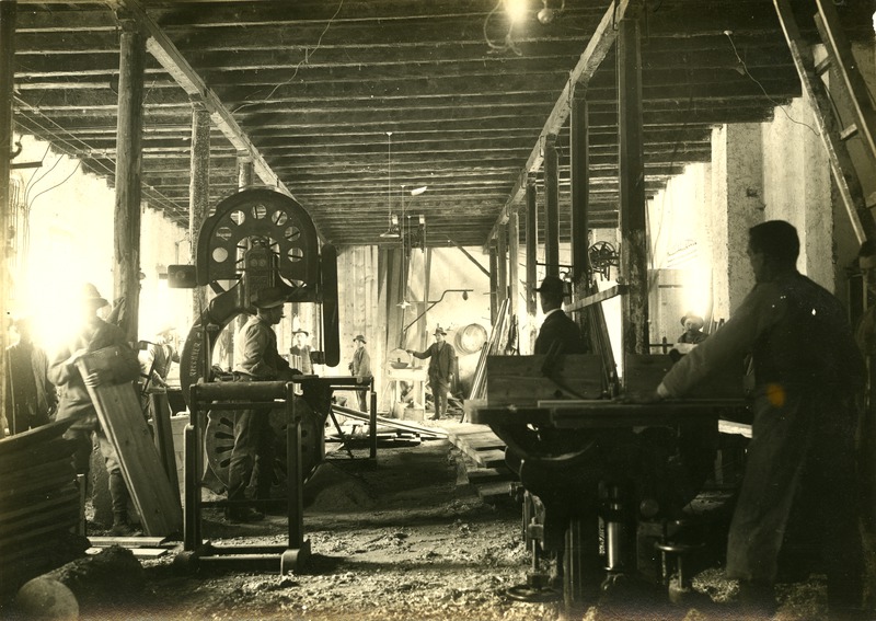 Operai al lavoro all'interno di una segheria Pantalena Volpe