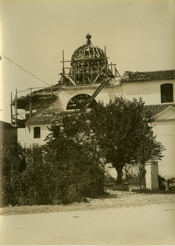 Ceggia - Ricostruzione della cupola e della zona absidale della chiesa parrocchiale di Ceggia durante i lavori per la rinascita delle terre liberate ad opera del Genio MilitarePantalena Volpe
