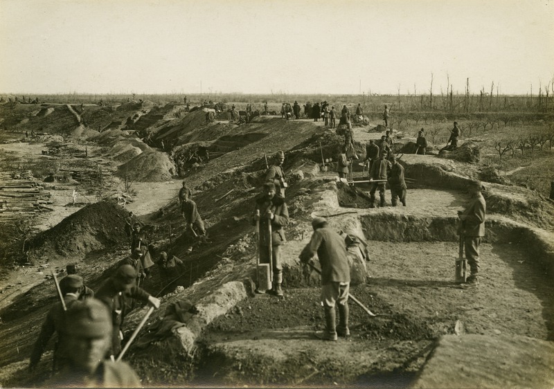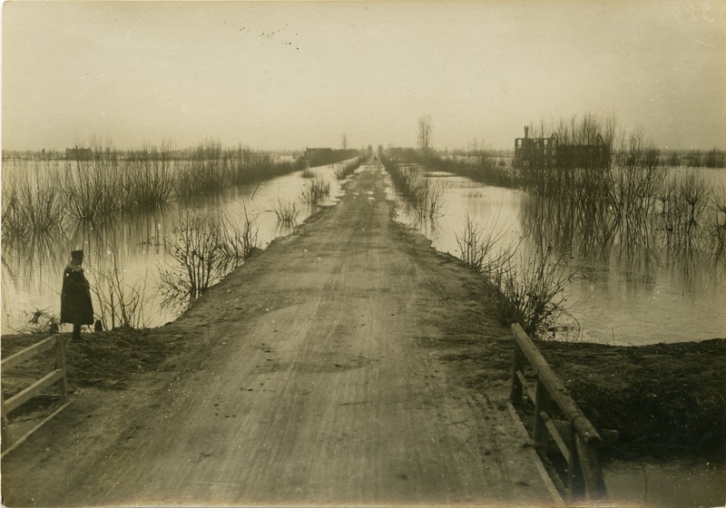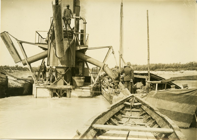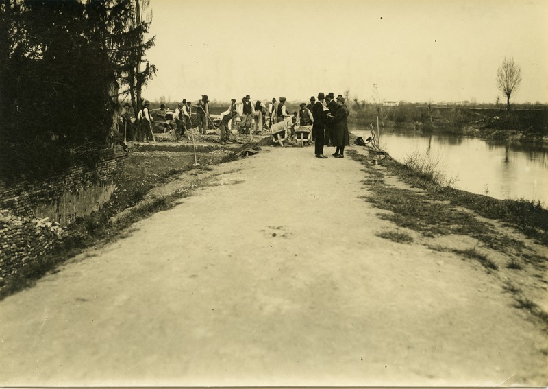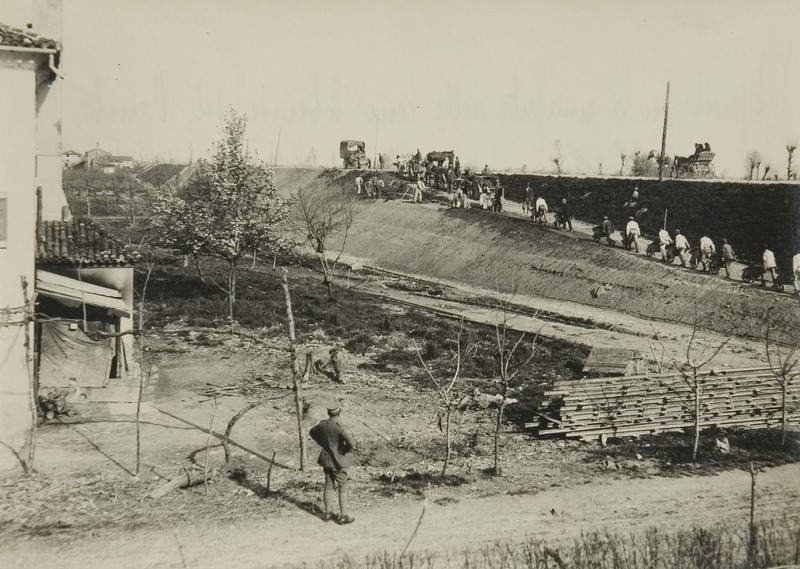 Ricostruzione provvisoria degli argini del fiume Piave in seguito alla rotta del gennaio 1919Pantalena Volpe