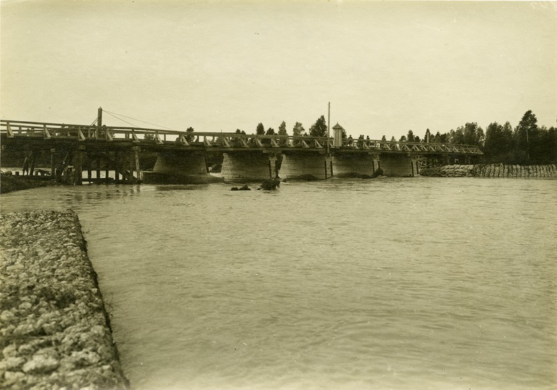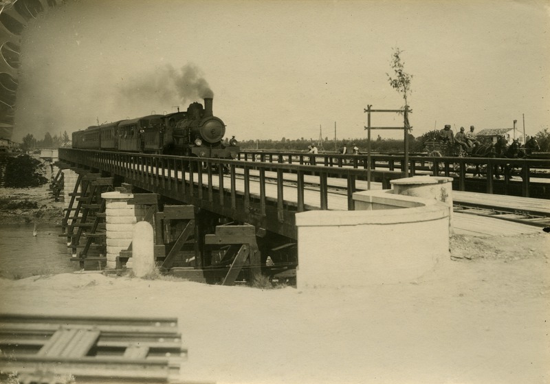Cessalto - Ponte ferroviario di S. Anastasio sul Livenza fatto saltare dagli austriaci e il ponte nuovo costruito dal Genio MilitarePantalena Volpe
