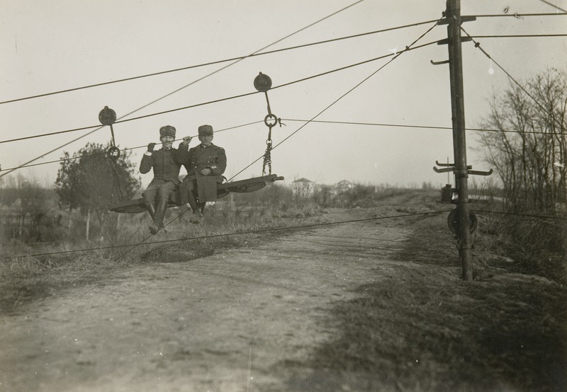 Il re Vittorio Emanuele III ed un ufficiale su una teleferica sul PiavePantalena Volpe