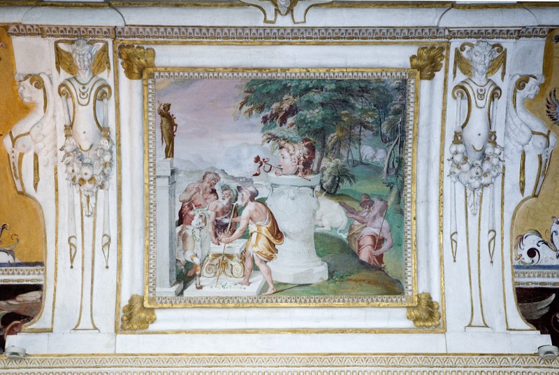 Villa d'Este - Interno - Sala della Fontana di Tivoli - Volta, edicola in stucco con scena dei Sacrifici ad Apollo, Diana, Cerere e Bacco, affresco - Sec. XVI/ seconda metàStocchi, Albino - Mamone, AngeloGabinetto Fotografico Nazionale