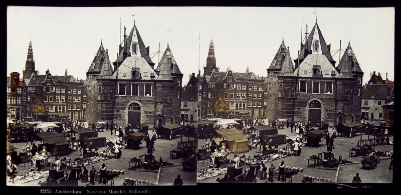 Amsterdam - La piazza del Nieuwmarkt (mercato nuovo) con l'edificio della Waage (la pesa pubblica) e il mercatoFerrier père et fils et Soulier et LevyLe Lieure