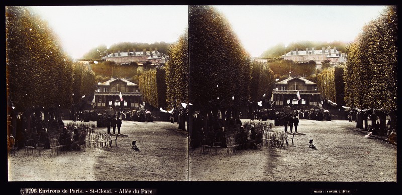Saint-Cloud - Veduta di un viale alberato del parco con un ristorante-caffèFerrier père et fils et Soulier et LevyLe Lieure