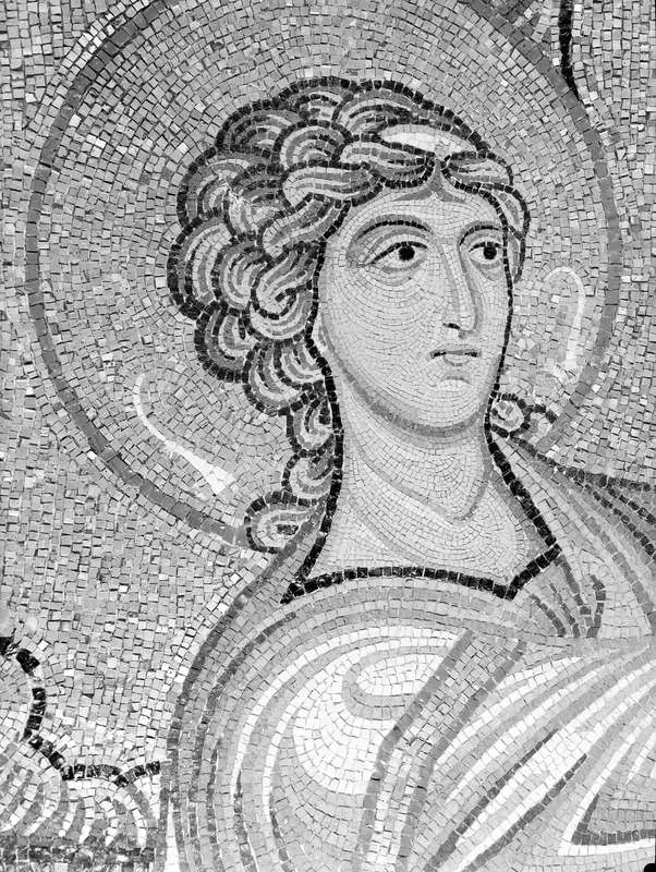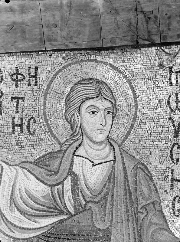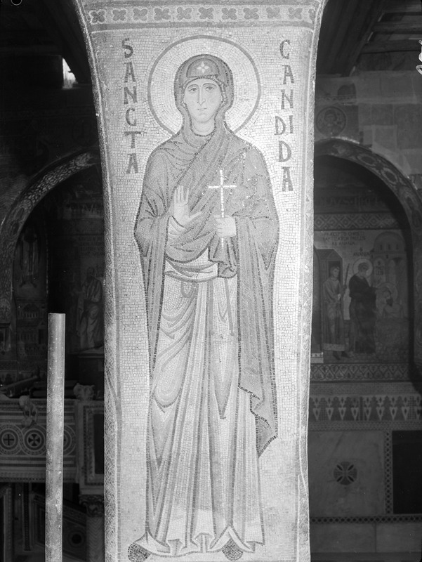 Palermo - Palazzo dei Normanni - Cappella Palatina, navata lato nord, piedritto sopra la quinta colonna da ovest, S. Candida, particolareMaraini, FoscoMaraini