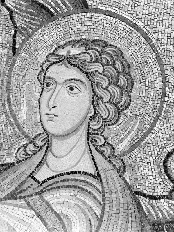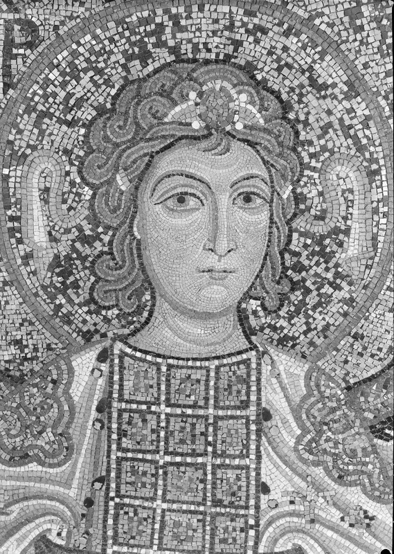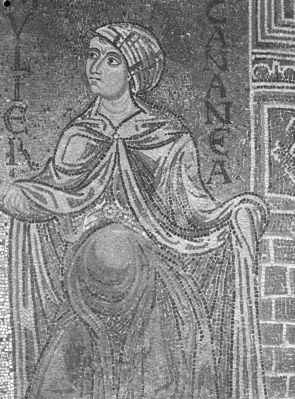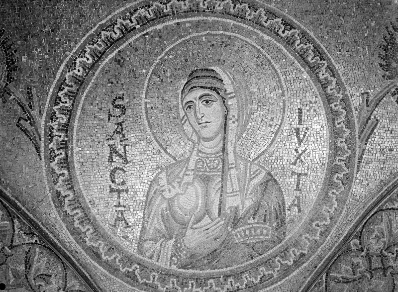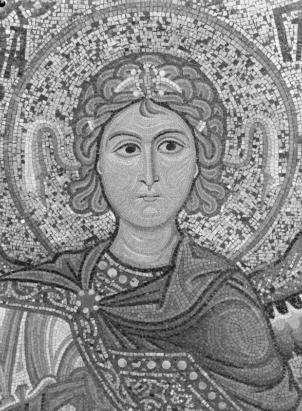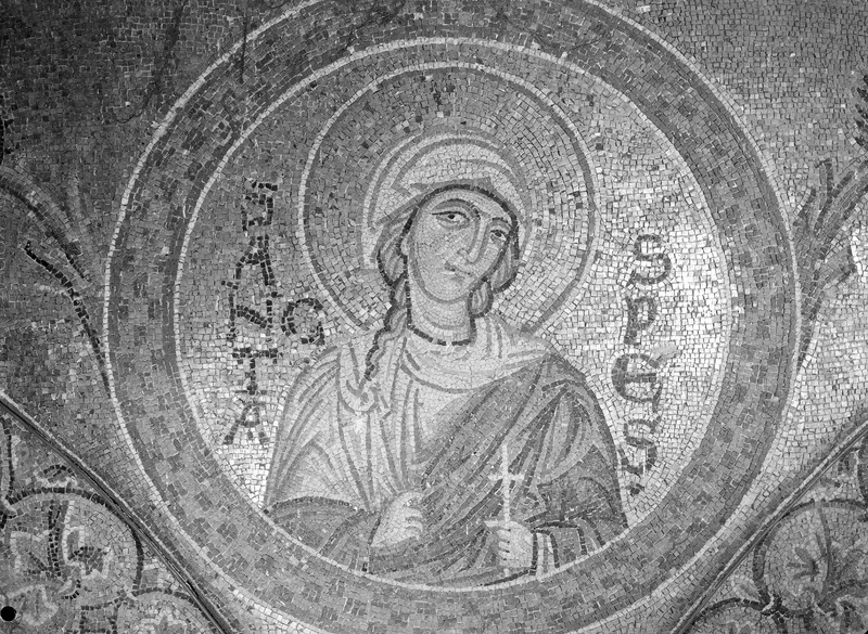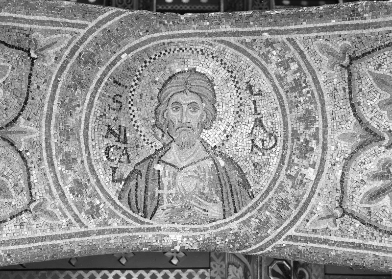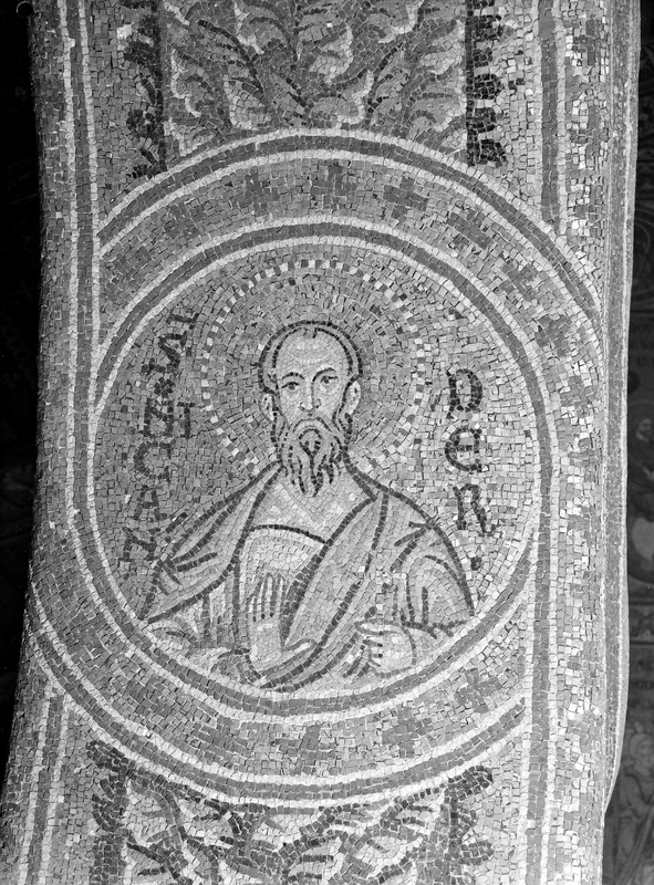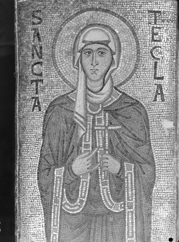 Palermo - Palazzo dei Normanni - Cappella Palatina navata lato sud, piedritto sopra la seconda colonna da est, S. Tecla, particolareMaraini, FoscoMaraini