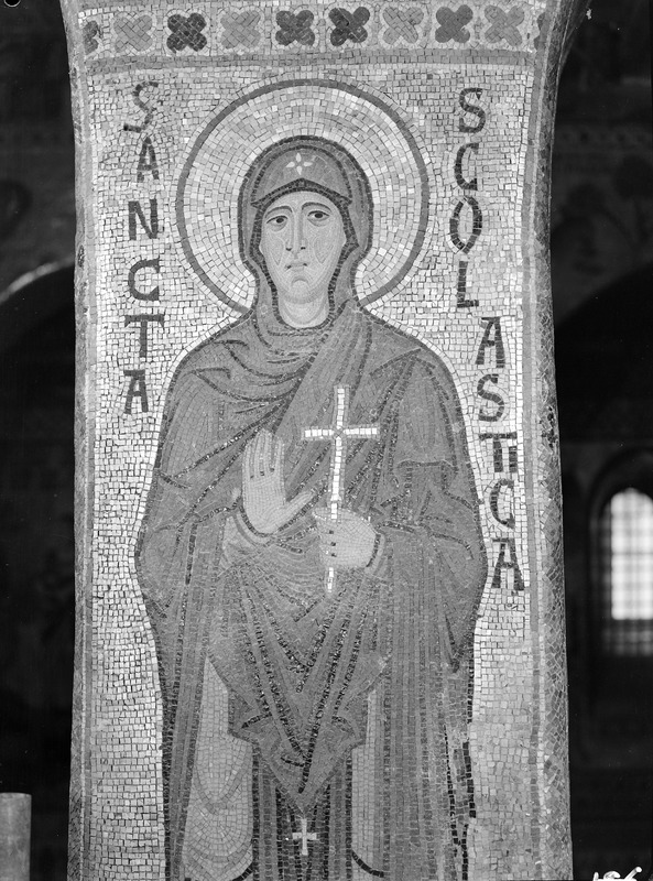 Palermo - Palazzo dei Normanni - Cappella Palatina navata lato sud, piedritto sopra la prima colonna da est, S. Scolastica, particolareMaraini, FoscoMaraini
