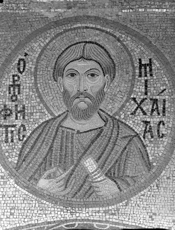 Palermo - Chiesa di S. Maria dell'Ammiraglio, Re Ruggero incoronato da Cristo: part. Re RuggeroMaraini, FoscoMaraini