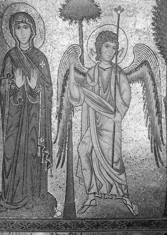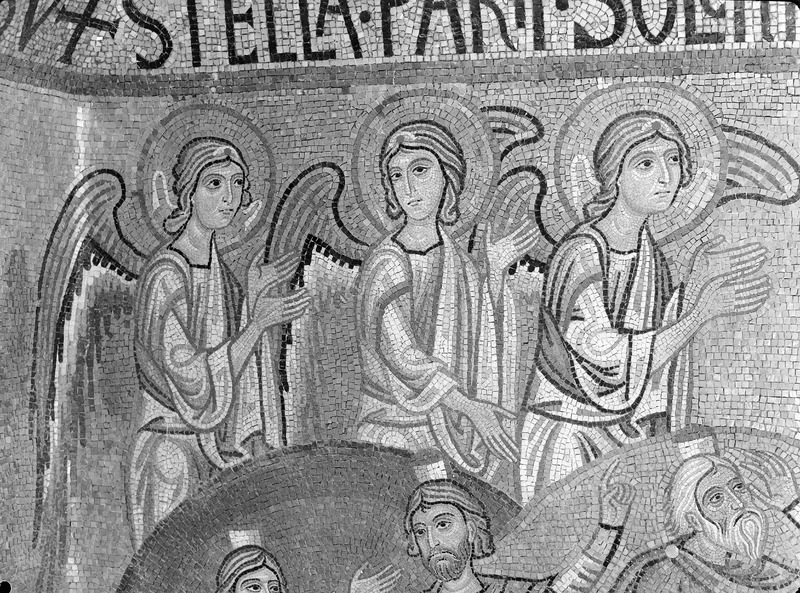 Palermo - Palazzo dei Normanni - Cappella Palatina, ala sud del transetto, parete sud, Natività, part. Tre Angeli adorantiMaraini, FoscoMaraini