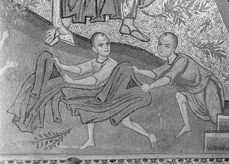 Monreale - Cattedrale di Santa Maria Nuova - Transetto, braccio meridionale, ingresso a Gerusalemme part.: albero con figuraMaraini, FoscoMaraini