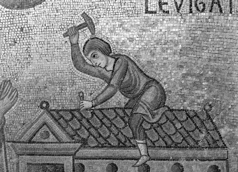 Palermo - Palazzo dei Normanni - Cappella Palatina, costruzione dell Arca, part. operaio sul tettoMaraini, FoscoMaraini