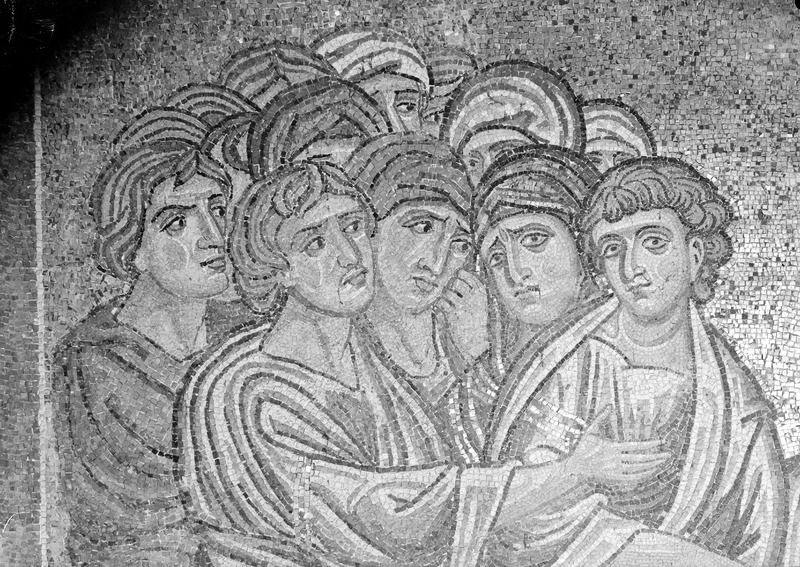 Palermo - Palazzo dei Normanni - Cappella Palatina, ala sud del transetto, parete sud, Resurrezione di lazzaro, part. lazzaro e figure accantoMaraini, FoscoMaraini
