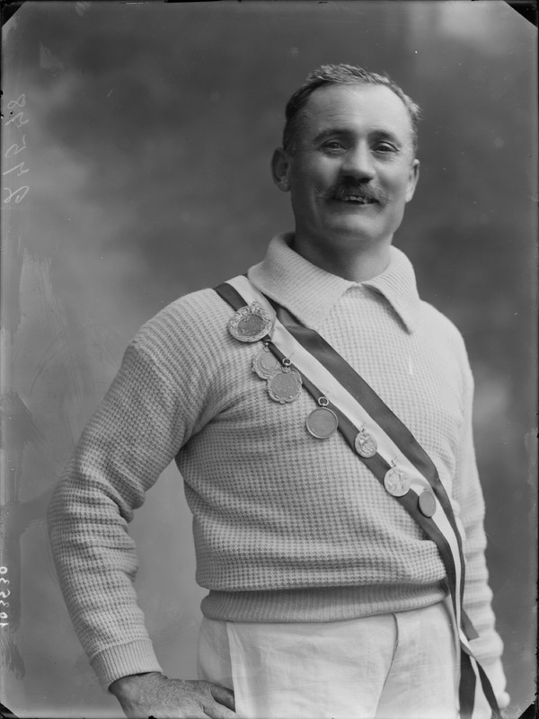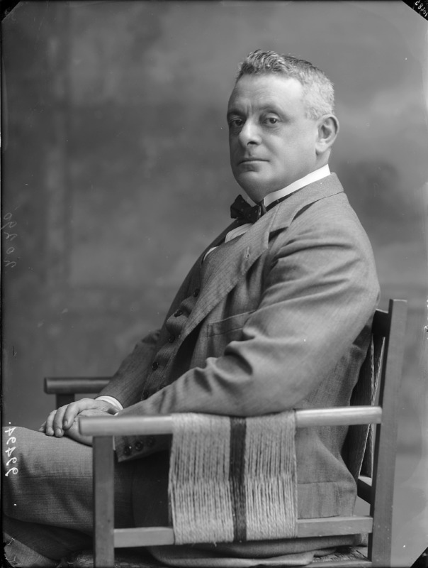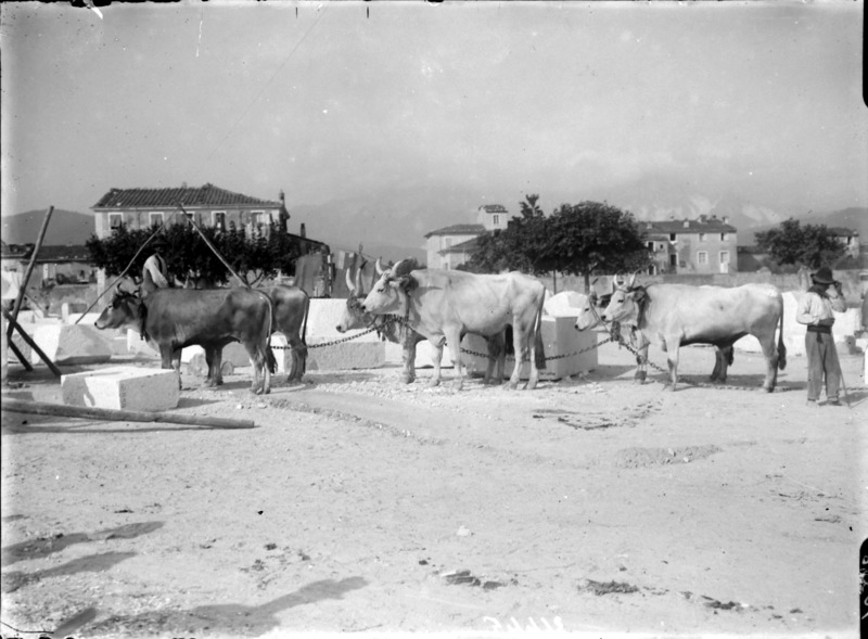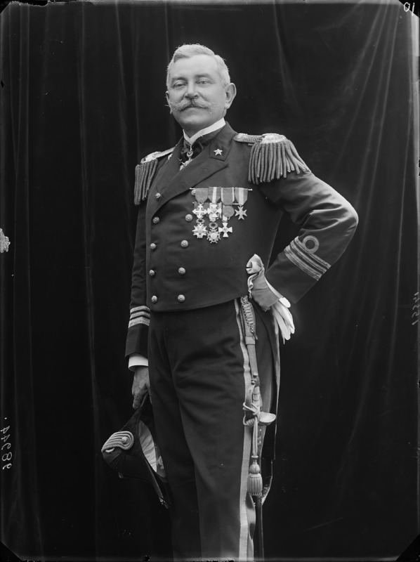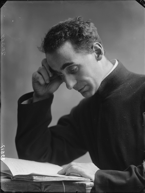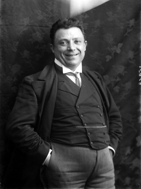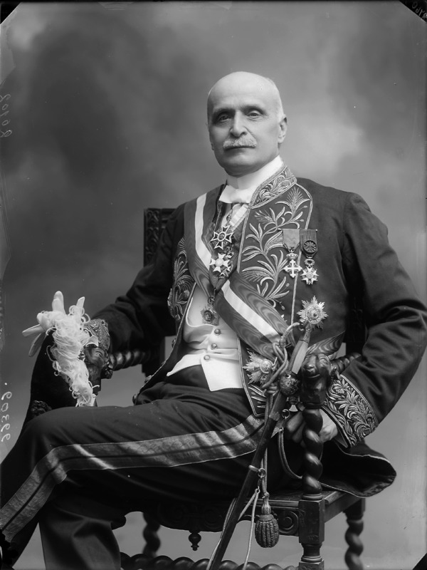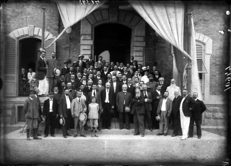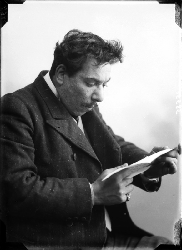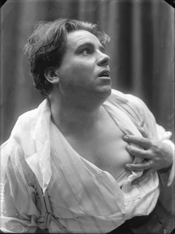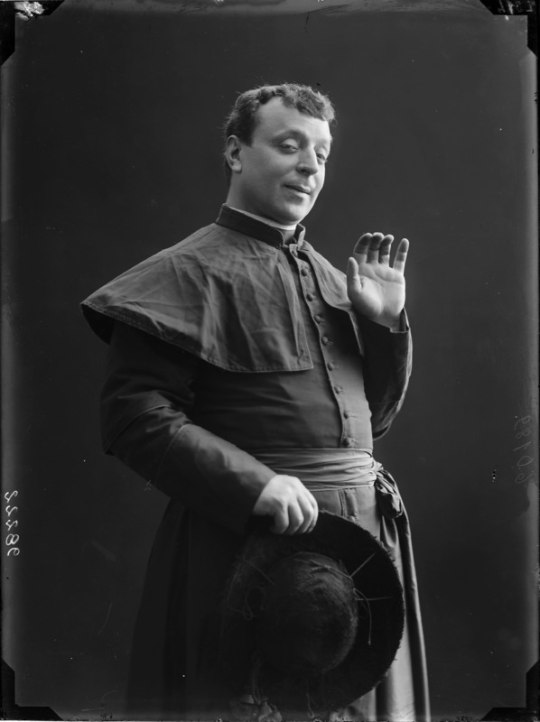 Paola, principessa di Ostheim, Sassonia, Weimar - Ritratti - 1910-1920 ca.. Ritratto, a figura intera, della principessa Paola di Ostheim, Sassonia, Weimar. Il soggetto, posto al centro dell'immagine, con il corpo di profilo ed il volto frontale, rivolge lo sguardo verso l'obbiettivo- porta la mano sinistra sul fianco e appoggia il braccio destro sullo schienale di una poltrona, mentre tiene con la stessa mano un ventaglio di piume di struzzo- indossa un abito da sera ed un cappello ornato di piume di struzzo. E' presente un fondale dipinto..