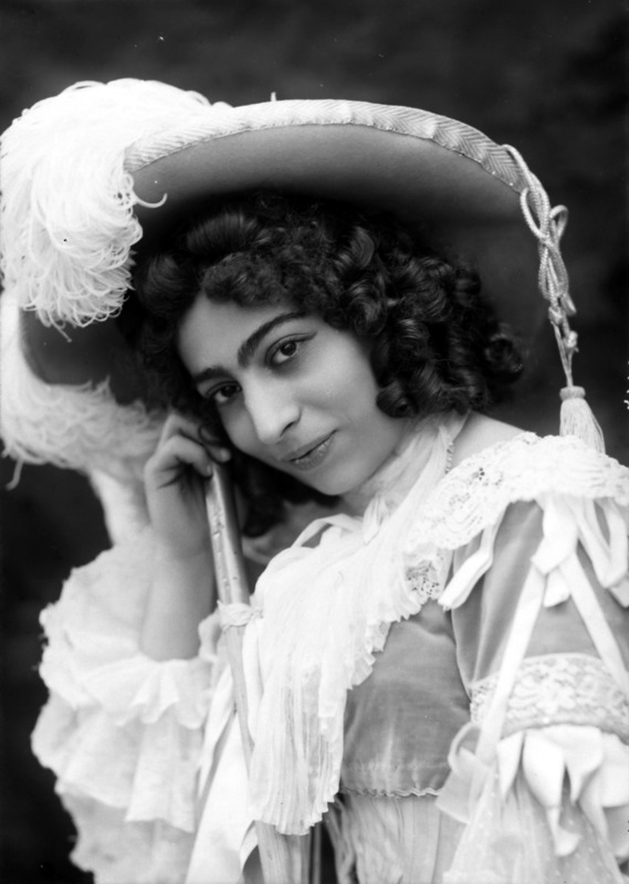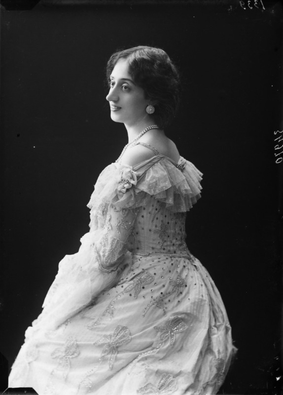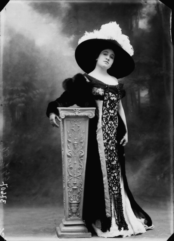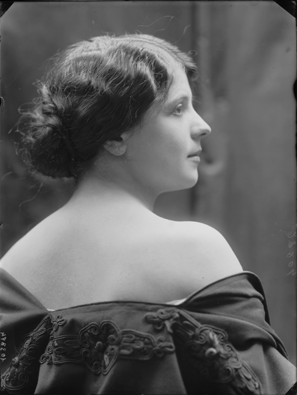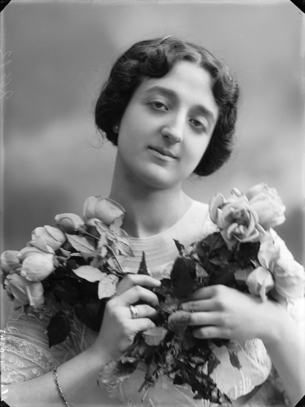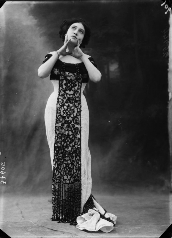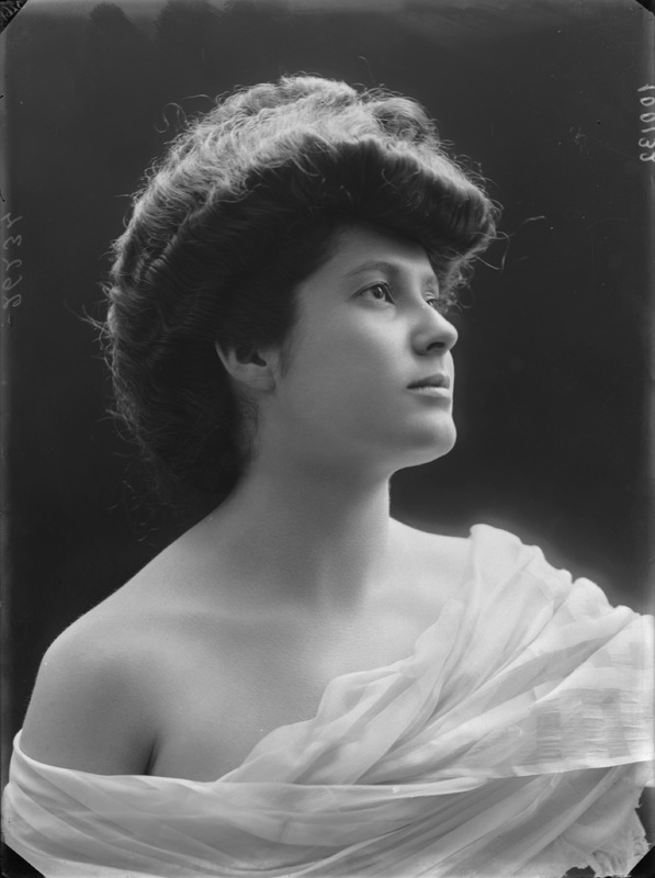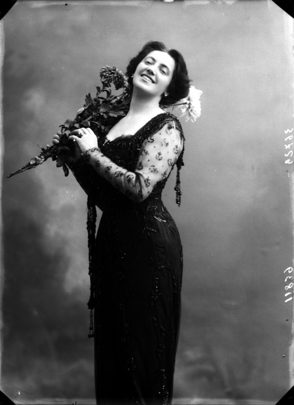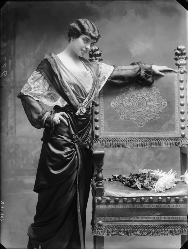 Della Rizza, Gilda- Cantanti - Ritratti fotografici- Donne - Ritratti fotografici. Ritratto, a mezzo busto, di Gilda Della Rizza. Il soggetto, leggermente spostato a sinistra dell'immagine con il corpo di spalle ed il volto di profilo, indossa un abito con un'ampia scollatura, che lascia scoperte le spalle, ed ha i capelli raccolti dietro la nuca. Si osserva, sullo sfondo, un tendaggio..