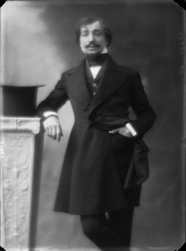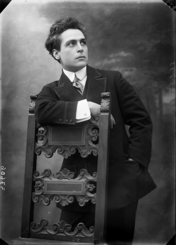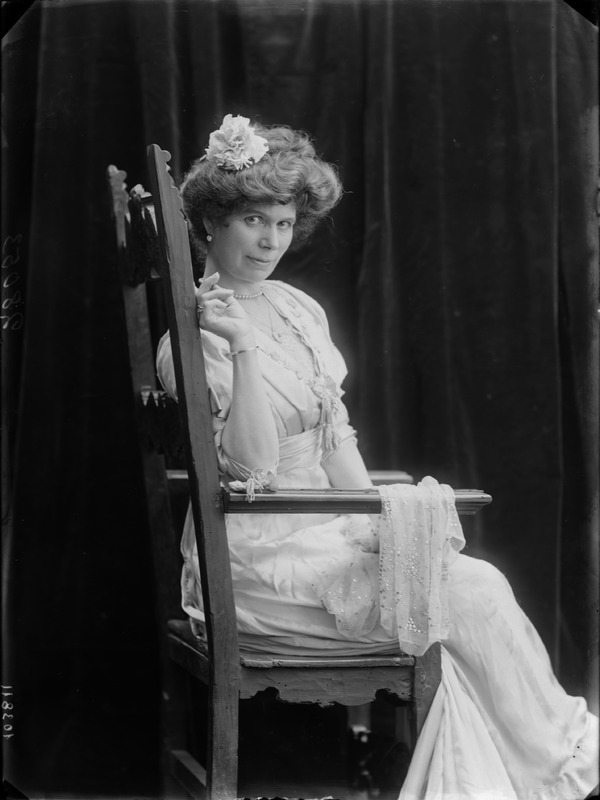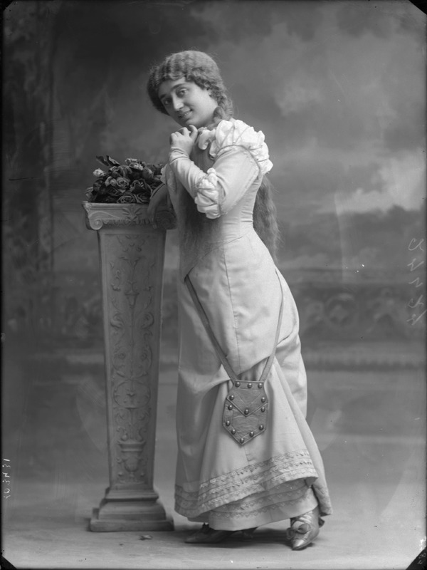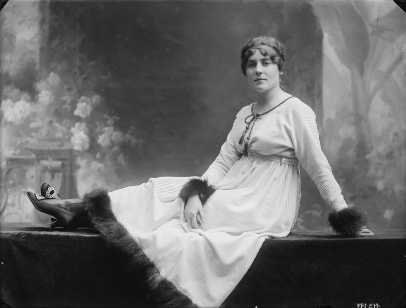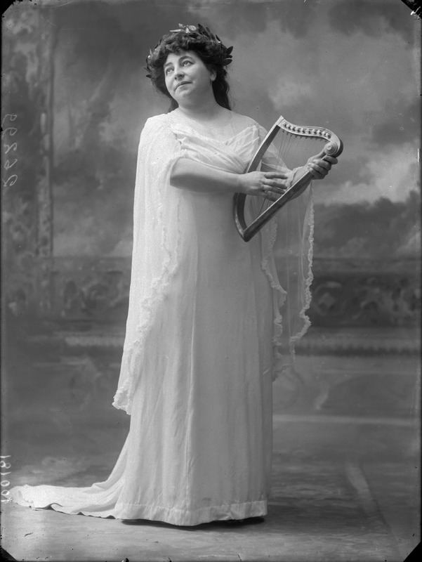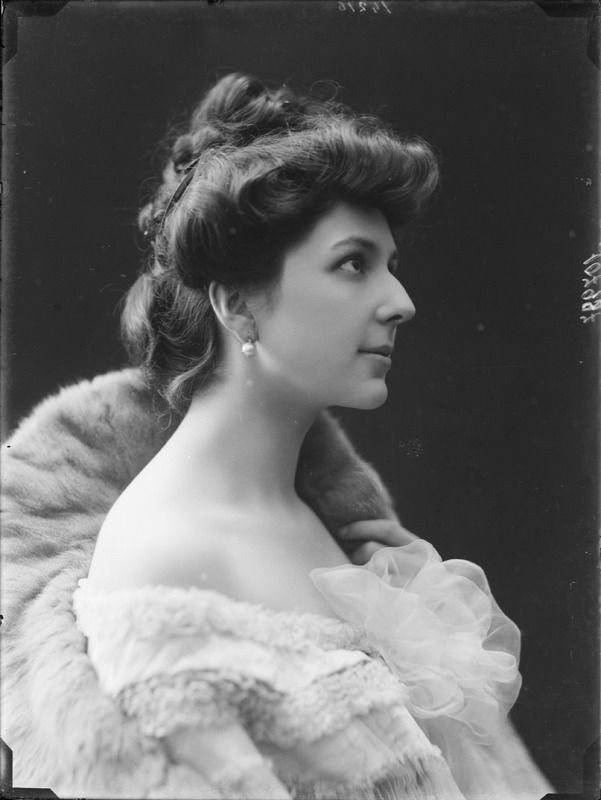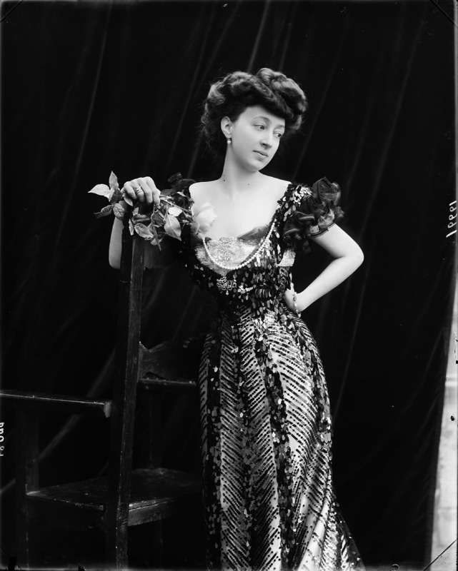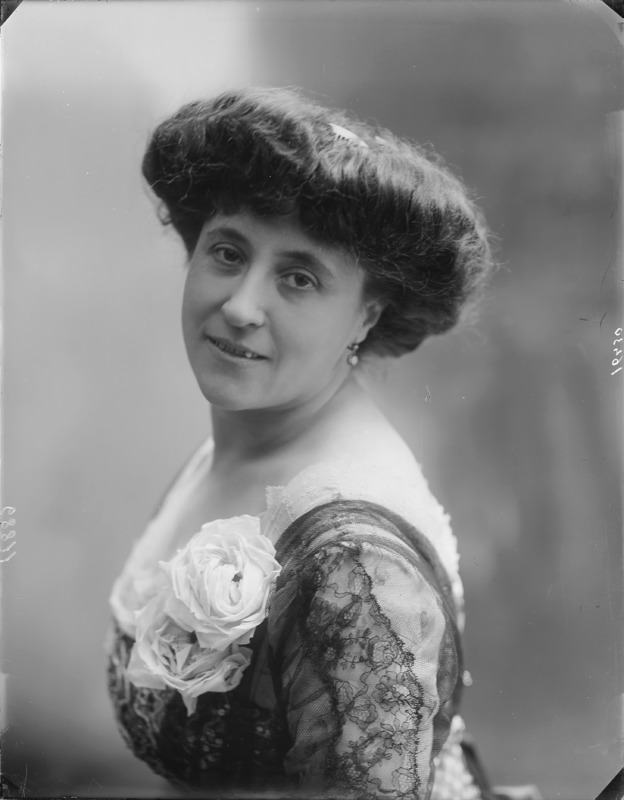 Della Rizza, Gilda- Cantanti - Ritratti fotografici- Donne - Ritratti fotografici. Ritratto, a mezzo busto, di Gilda Della Rizza. Il soggetto, leggermente spostato a sinistra dell'immagine con il corpo di spalle ed il volto di profilo, indossa un abito con un'ampia scollatura, che lascia scoperte le spalle, ed ha i capelli raccolti dietro la nuca. Si osserva, sullo sfondo, un tendaggio..