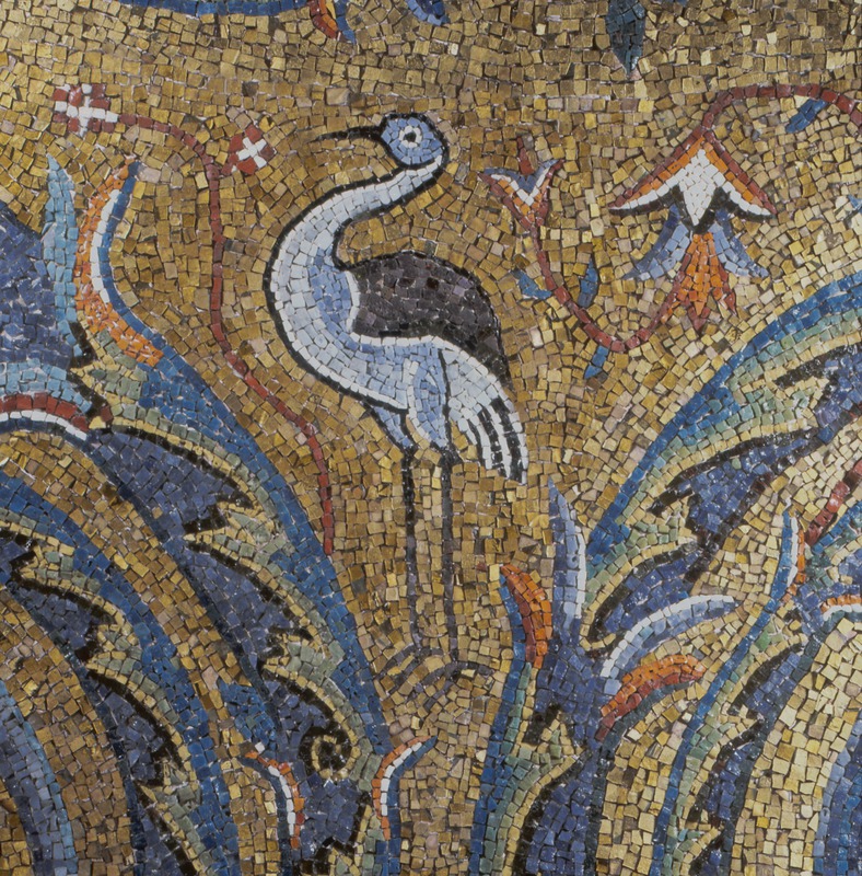 Roma - Basilica di San Clemente - Chiesa superiore - Presbiterio - Catino absidale - Decorazione musiva raffigurante il Trionfo della Croce: particolare dei girali d'acanto con uccello - Mosaico, prima meta' Sec.XIIFotografo GFNGabinetto Fotografico Nazionale