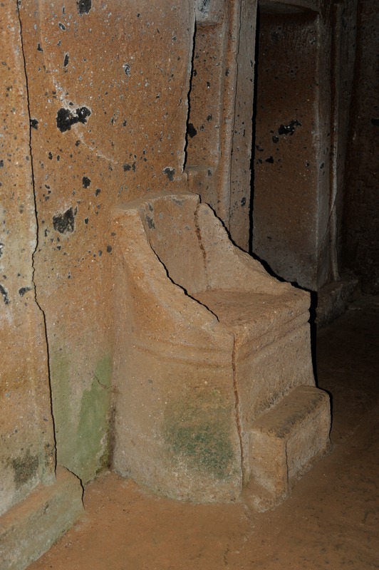 Cerveteri - Necropoli della Banditaccia - Tomba degli scudi e delle sedie, sedie a spalliera ricurva con sgabello posta accanto all'ingresso della camera funebre principale.Valentini, Stefano - Di Carlo, AntonioGabinetto Fotografico Nazionale
