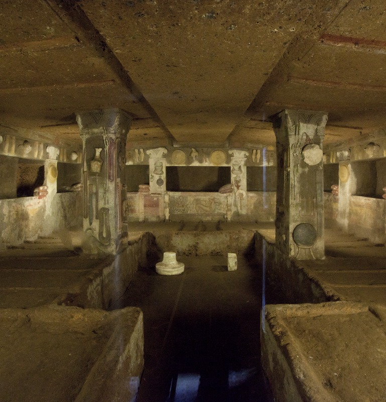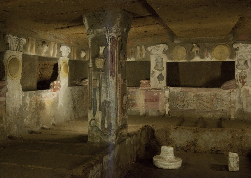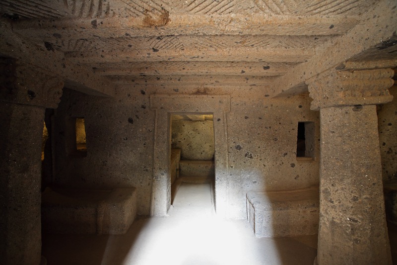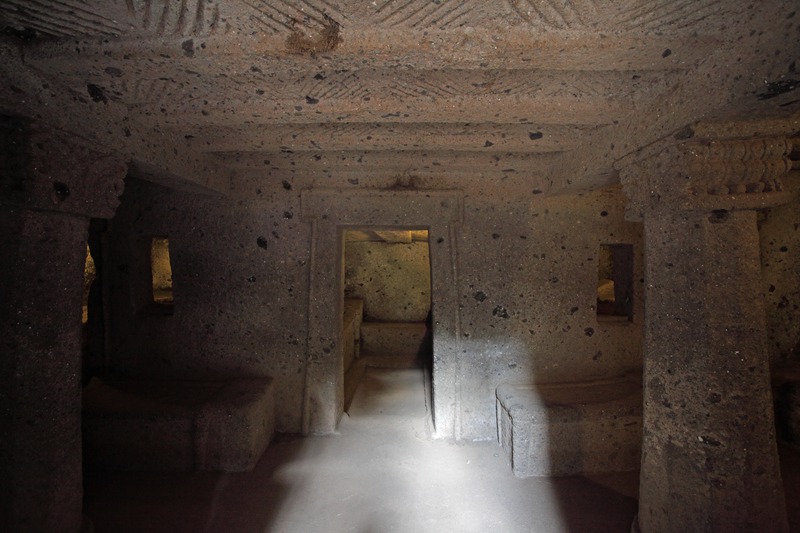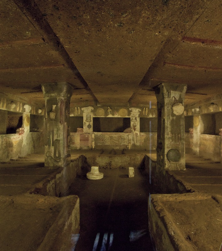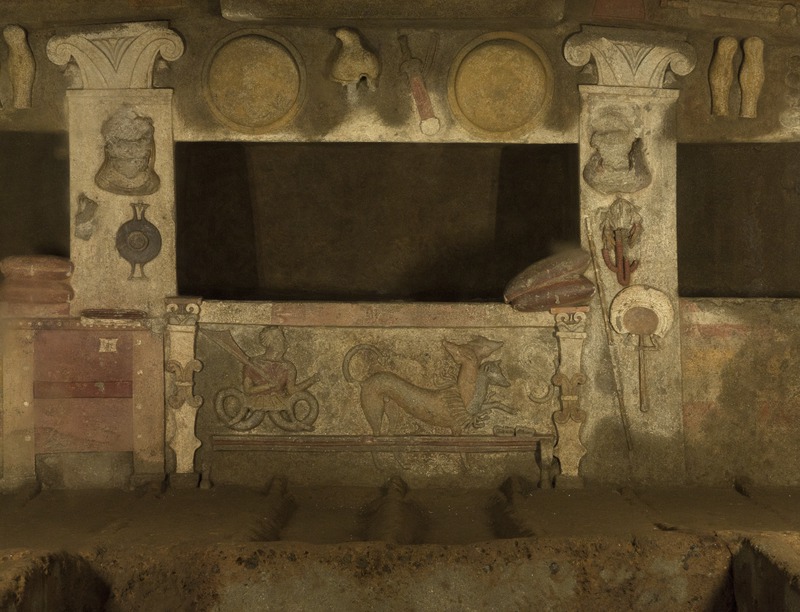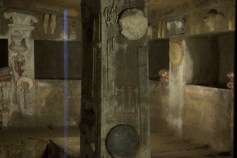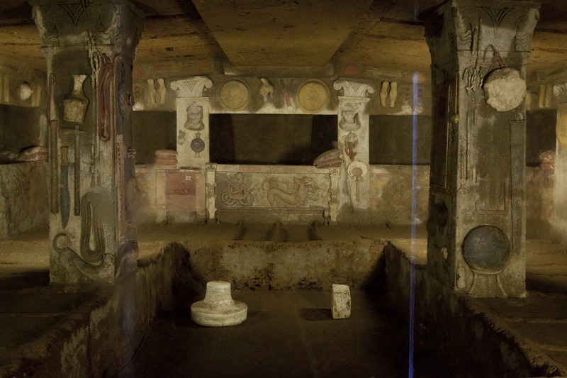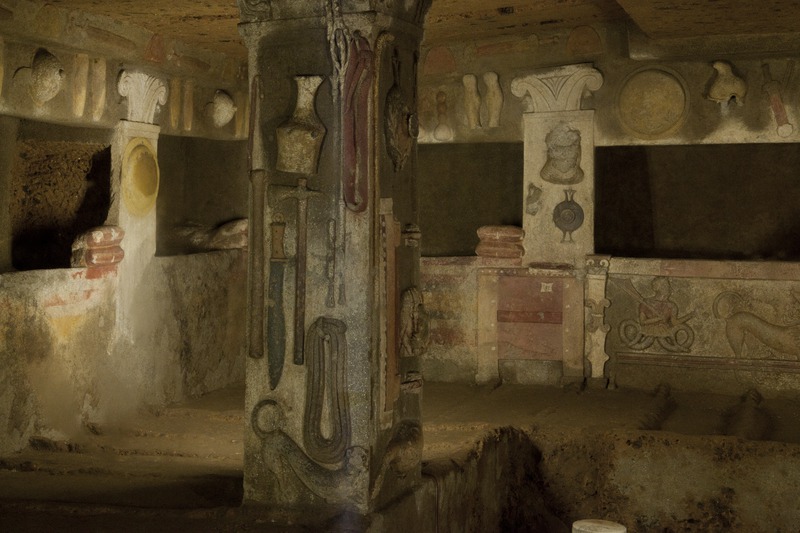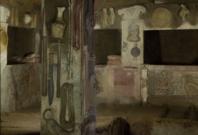 Cerveteri - Necropoli della Banditaccia - Tomba dei Rilievi, bassorilievi, rilievi scolpiti in stucco sulle colonne, sui muri e intorno alle nicchie sepolcraliValentini, Stefano - Di Carlo, AntonioGabinetto Fotografico Nazionale