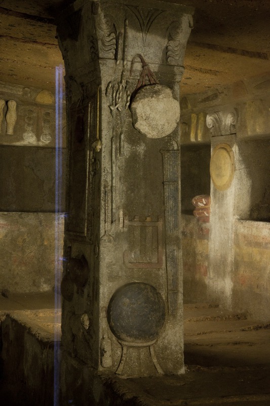 Cerveteri - Necropoli della Banditaccia - Tomba dei Rilievi, colonna con rappresentazione di armi, scudi, corazze, lanceValentini, Stefano - Di Carlo, AntonioGabinetto Fotografico Nazionale