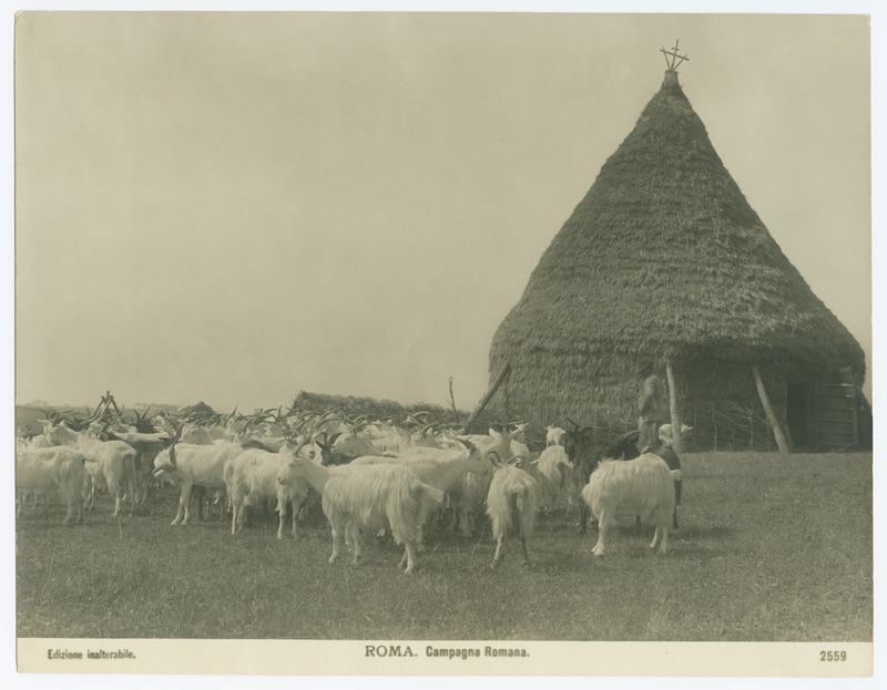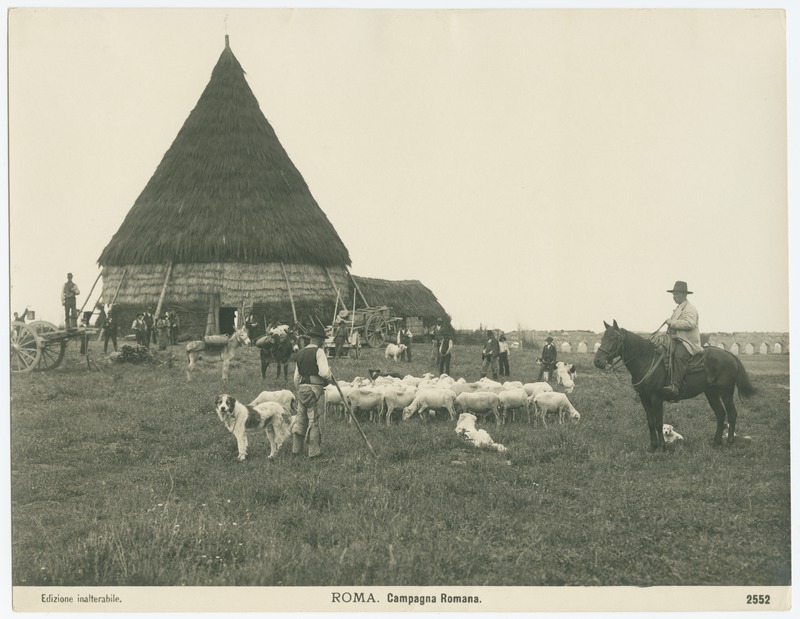 Campagna romana - Popolani con gregge, sullo sfondo abitazioni ruraliNeuen Photographischen Gesellschaft (N.P.G.)Becchetti