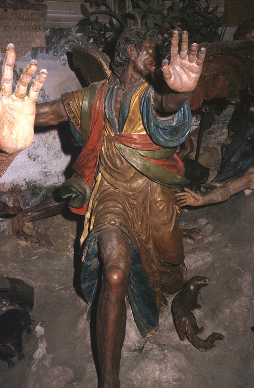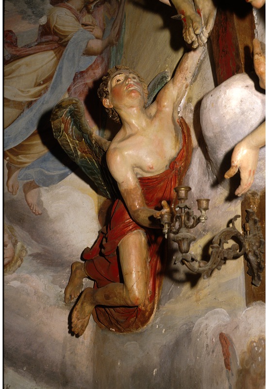 Orta San Giulio - Sacro Monte - Cappella II - Interno - Il Crocifisso parla a S. Francesco nella chiesa di S. Damiano - Part.: angelo ai piedi del Crocifisso - Statue in terracotta policrome - 1608Di Carlo, AntonioGabinetto Fotografico Nazionale