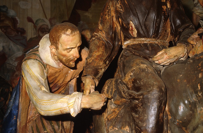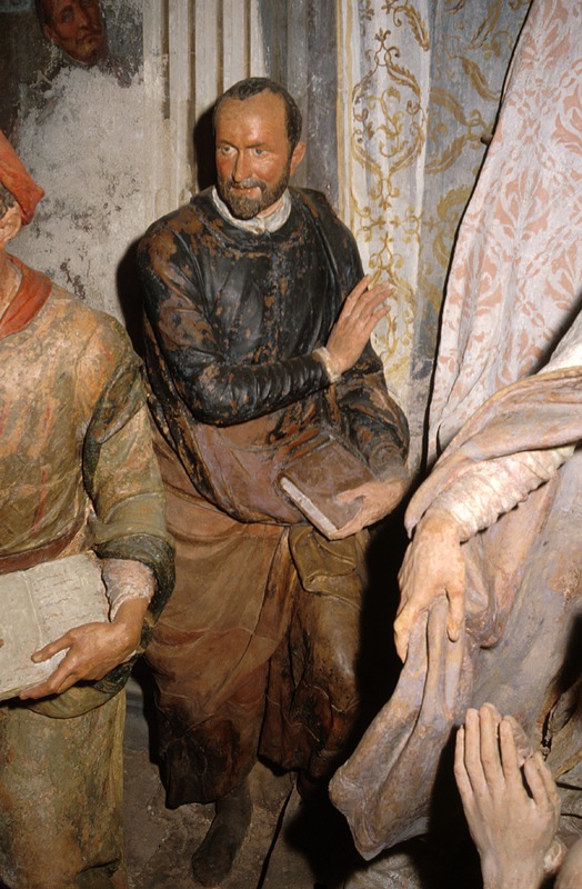 Orta San Giulio - Sacro Monte - Cappella V - Interno - Vestizione dei primi seguaci di S. Francesco - Part.: il Santo veste Bernardo di Quintavalle e Pietro Cattaneo; persone stupite assistono alla scena - Statue in terracotta policrome - 1615Di Carlo, AntonioGabinetto Fotografico Nazionale