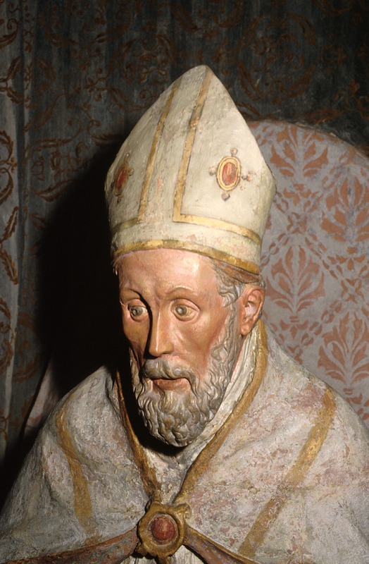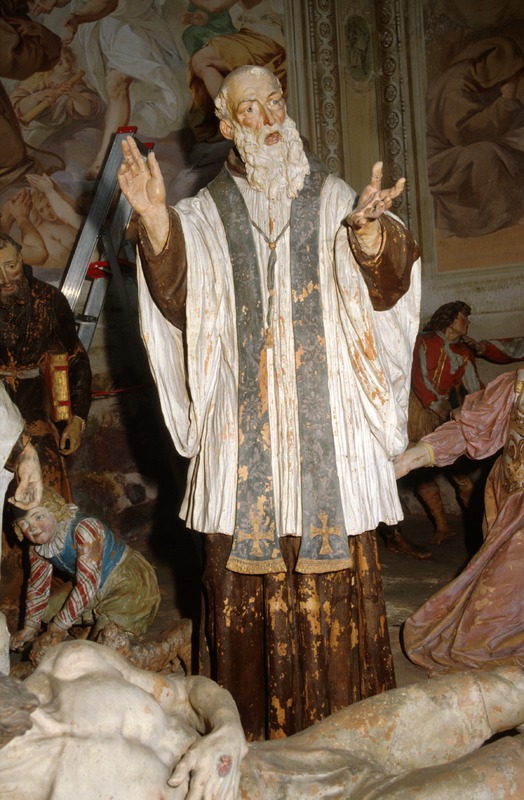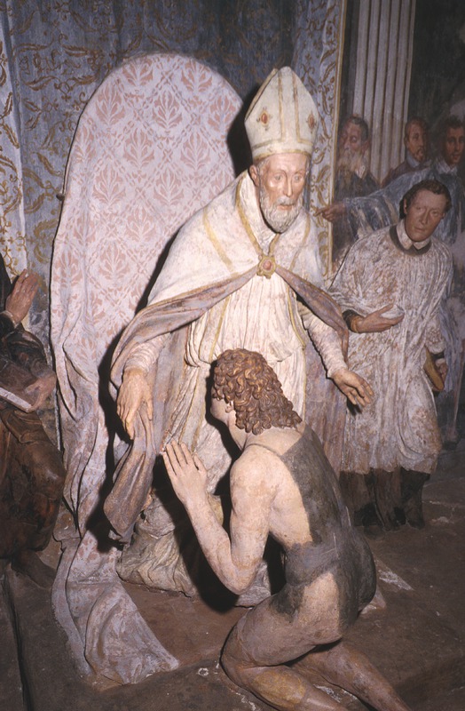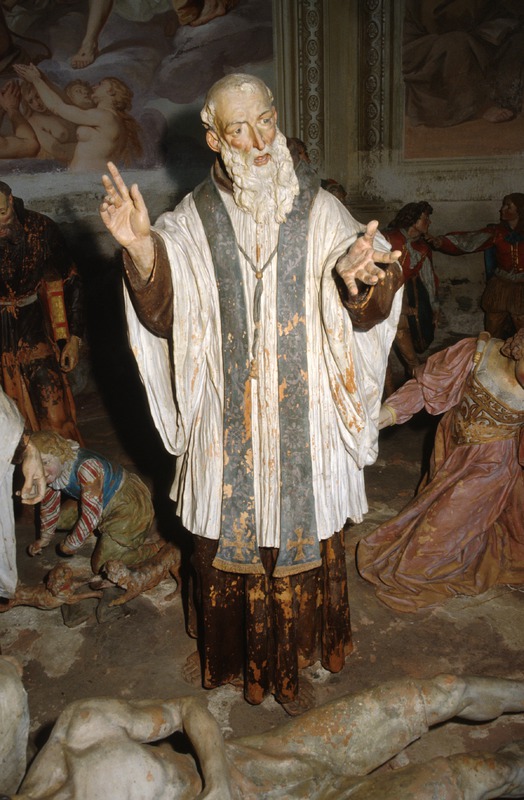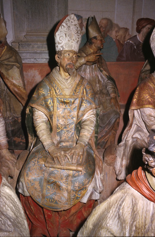 Orta San Giulio - Sacro Monte - Cappella III - Interno - S. Francesco rinuncia ai beni del mondo nelle mani del vescovo di Assisi - Part.: vescovo - Statue in terracotta policrome - 1608Di Carlo, AntonioGabinetto Fotografico Nazionale
