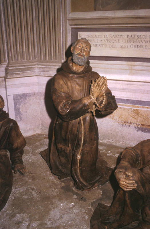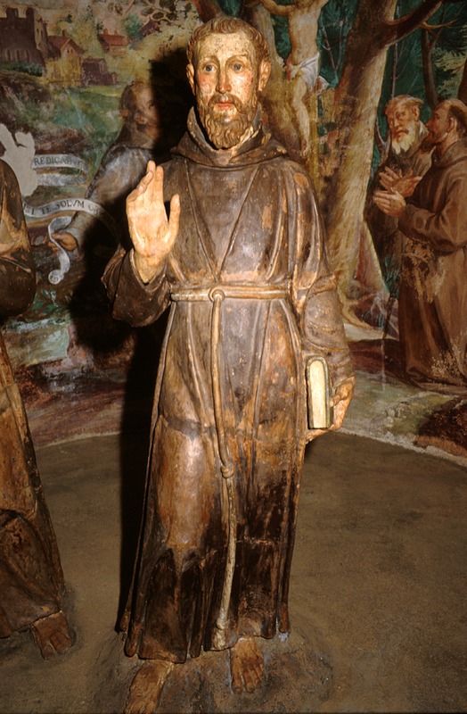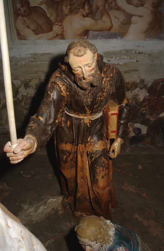 Orta San Giulio - Sacro Monte - Cappella XI - Interno - S. Francesco ottiene da Gesù il privilegio dell'indulgenza della Porziuncola - Sull'altare siedono Gesù e Maria tra un corteggio di angeli - Part.: il Santo - Statue in terracotta policrome - 1617Di Carlo, AntonioGabinetto Fotografico Nazionale