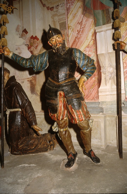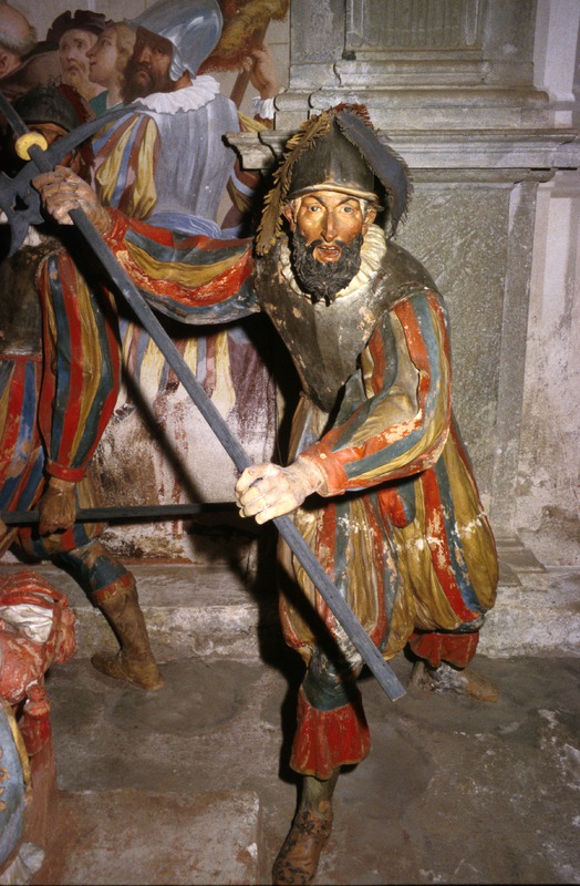 Orta San Giulio - Sacro Monte - Cappella XVI - Interno - S. Francesco torna ad Assisi dalla Verna poco prima di morire; la folla si schiera al passaggio del Santo stigmatizzato - Part.: soldato - Statue in terracotta policrome - Sec. XVII/ fineDi Carlo, AntonioGabinetto Fotografico Nazionale