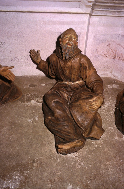 Orta San Giulio - Sacro Monte - Cappella XX - Interno - La canonizzazione di S. Francesco - Gregorio IX consegna al cardinale la bolla di canonizzazione; vi assistono ecclesiastici ed ambasciatori - Part.: frate - Statue in terracotta policrome - 1678Di Carlo, AntonioGabinetto Fotografico Nazionale