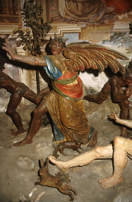 Orta San Giulio - Sacro Monte - Cappella X - Interno - La vittoria di S. Francesco sulle tentazioni - S. Francesco, oggetto di una tentazione carnale, si getta, nudo, in gennaio, fra i rovi di un roseto - Part.: demone - Statue in terracotta policrome - 1661/ postDi Carlo, AntonioGabinetto Fotografico Nazionale