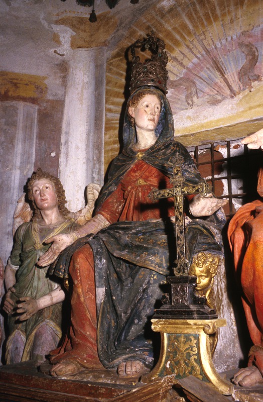 Orta San Giulio - Sacro Monte - Cappella XI - Interno - S. Francesco ottiene da Gesù il privilegio dell'indulgenza della Porziuncola - Sull'altare siedono Gesù e Maria tra un corteggio di angeli - Part.: la Vergine - Statue in terracotta policrome - 1617Di Carlo, AntonioGabinetto Fotografico Nazionale