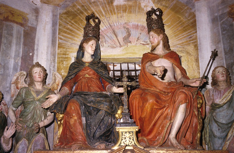 Orta San Giulio - Sacro Monte - Cappella XI - Interno - S. Francesco ottiene da Gesù il privilegio dell'indulgenza della Porziuncola - Sull'altare siedono Gesù e Maria tra un corteggio di angeli - Particolare - Statue in terracotta policrome - 1617Di Carlo, AntonioGabinetto Fotografico Nazionale