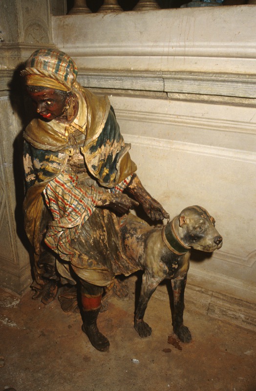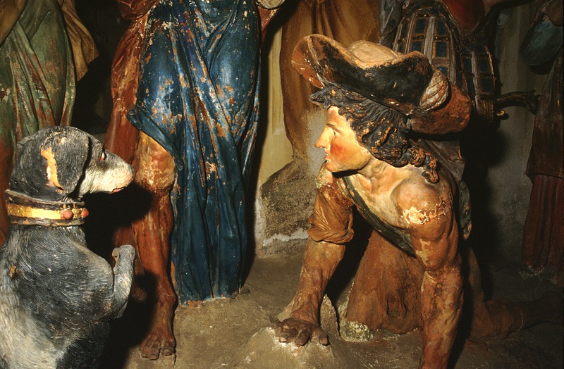 Orta San Giulio - Sacro Monte - Cappella XIX - Interno - I miracoli sul sepolcro del Santo; accorre una folla continua, di persone e infermi, contenuta da guardie - Part.: paggio e cane - Statue in terracotta policrome - 1684Di Carlo, AntonioGabinetto Fotografico Nazionale